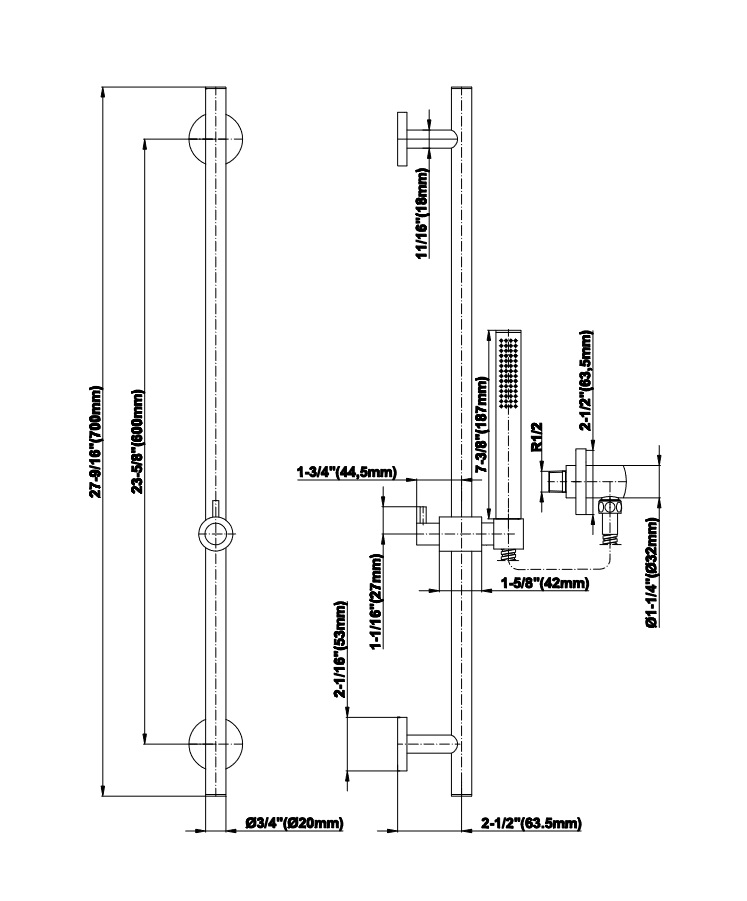zestaw prysznicowy na drążku: E-8660