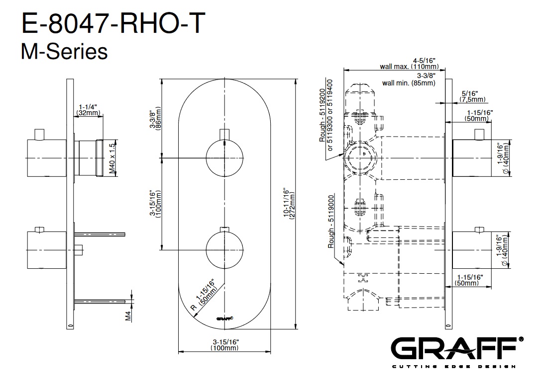 Graff M.E./M.E.25 Bateria natryskowa podtynkowa 2-uchwytowa - element zewnętrzny Chrom E-8047-RH0-T