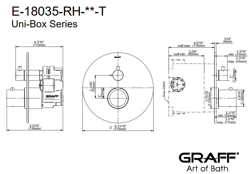 Graff M.E./M.E.25 Bateria natryskowa z systemem UNI-BOX podtynkowa - element zewnętrzny Chrom E-18035-RH-T