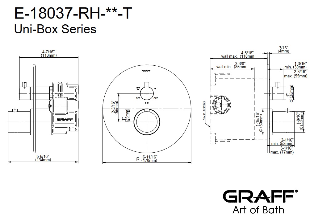 Graff M.E./M.E.25 Bateria natryskowa termostatyczna podtynkowa z przełącznikiem 3-drożnym - element zewnętrzny Chrom E-18037-RH-T
