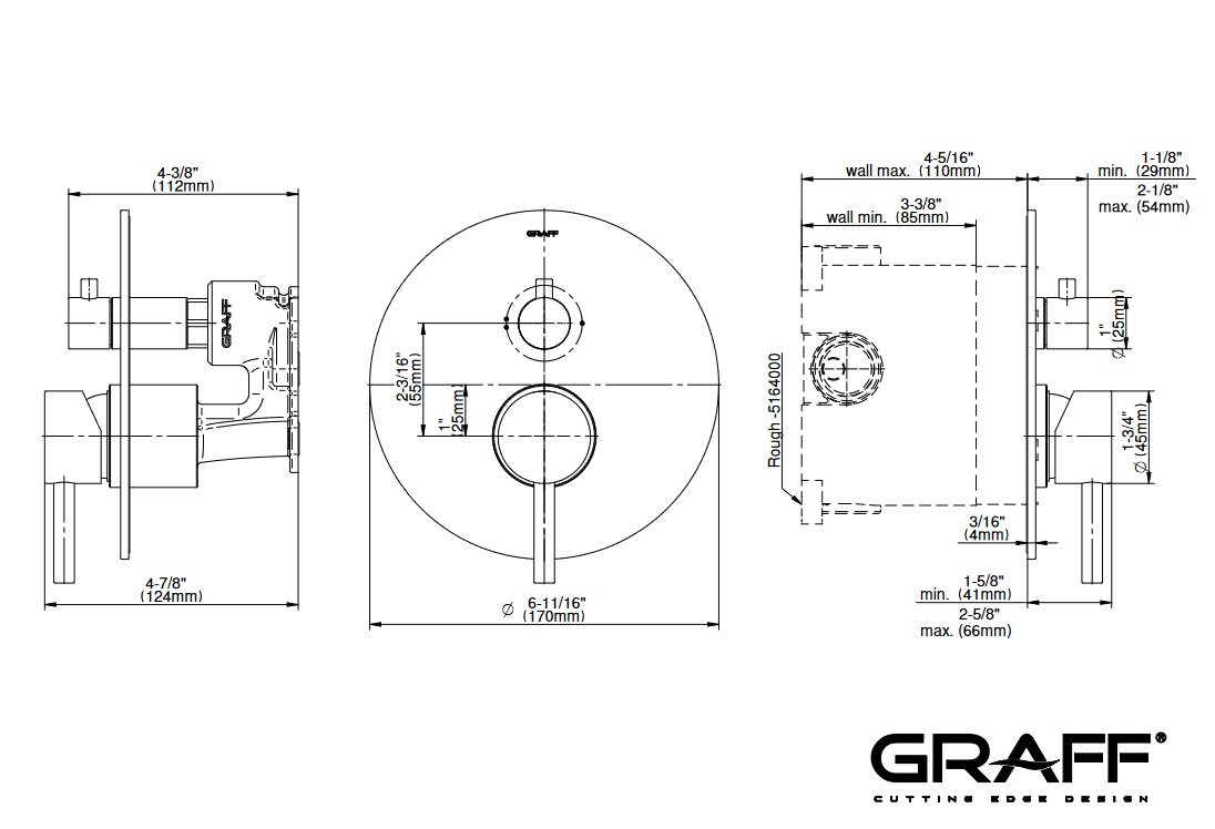 Graff M.E./M.E.25 Bateria natryskowa termostatyczna podtynkowa z przełącznikiem 2-drożnym - element zewnętrzny Chrom E-17020-T