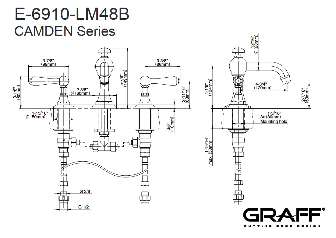 Graff Camden Bateria umywalkowa 3-otworowa Chrom E-6910-LM48B