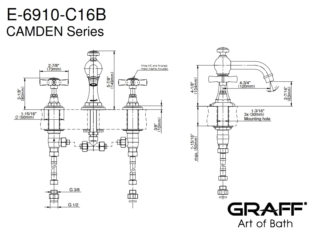 Graff Camden Bateria umywalkowa 3-otworowa Chrom E-6910-C16B