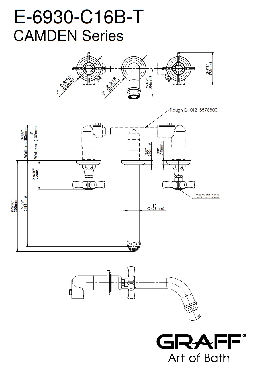 Graff Camden Bateria umywalkowa 3-otworowa podtynkowa 194 mm - element zewnętrzny Chrom E-6930-C16B-T