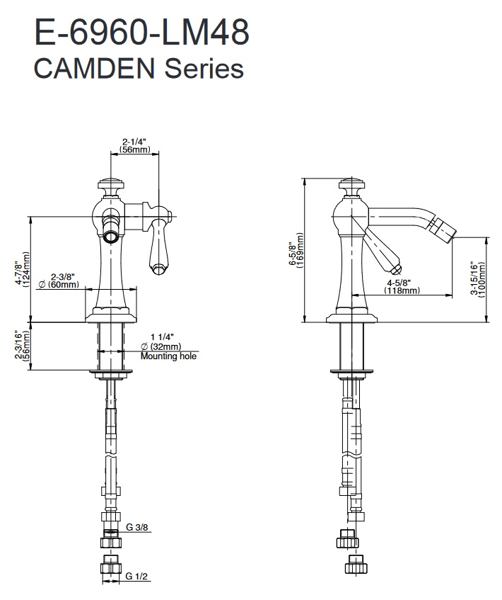 Graff Camden Bateria bidetowa jednouchwytowa Chrom E-6960-LM48