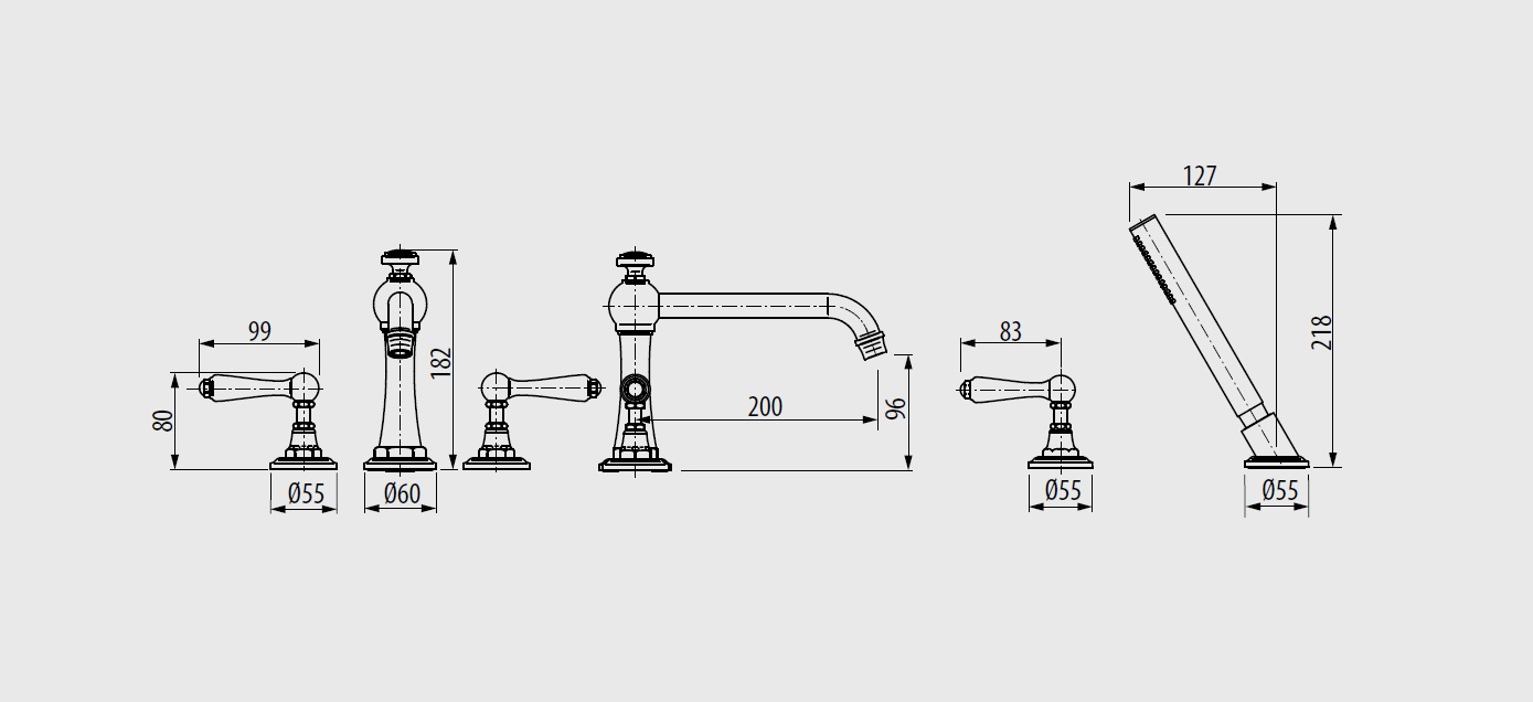 Graff Camden Bateria wannowa 5-otworowa z zestawem prysznicowym Chrom E-6951-LM48B