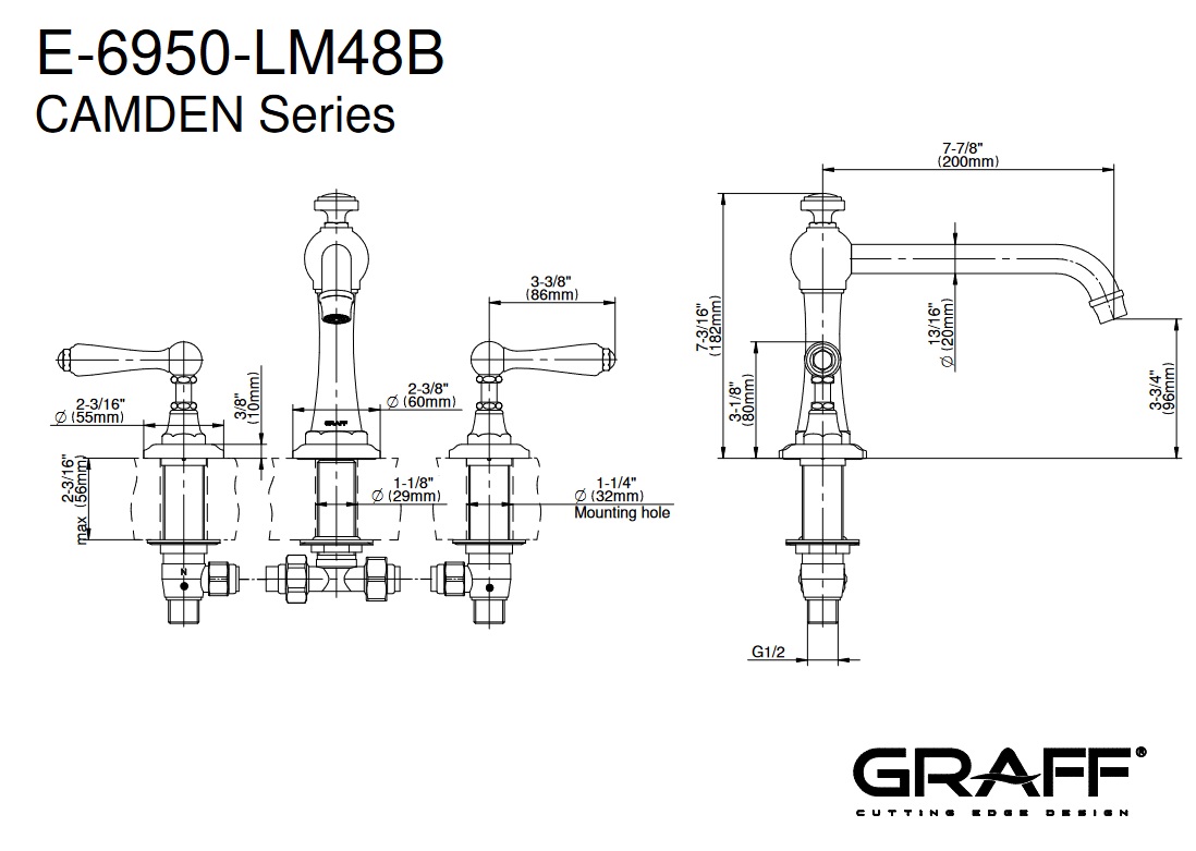 Graff Camden Bateria wannowa 3-otworowa Chrom E-6950-LM48B
