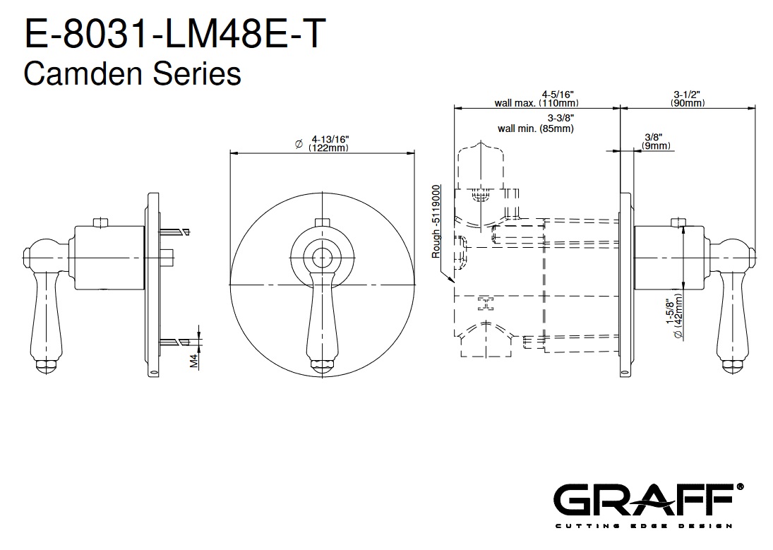 Graff Camden Bateria natryskowa termostatyczna podtynkowa - element zewnętrzny Chrom E-8031-LM48E-T
