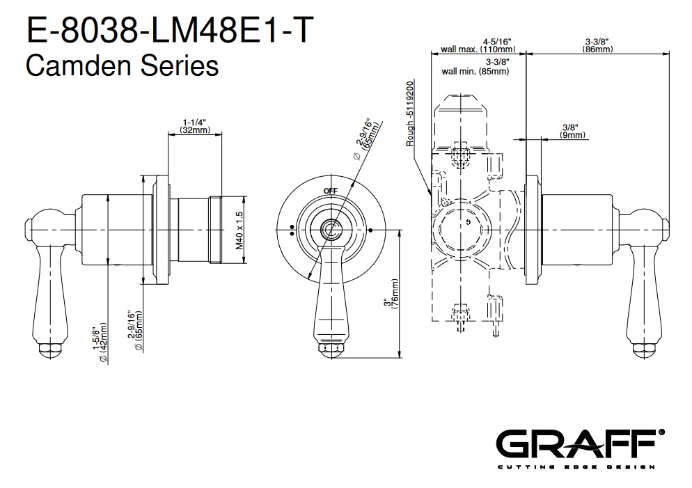 Graff Camden Rozdzielacz 2-drożny podtynkowy - element zewnętrzny Chrom E-8038-LM48E1-T
