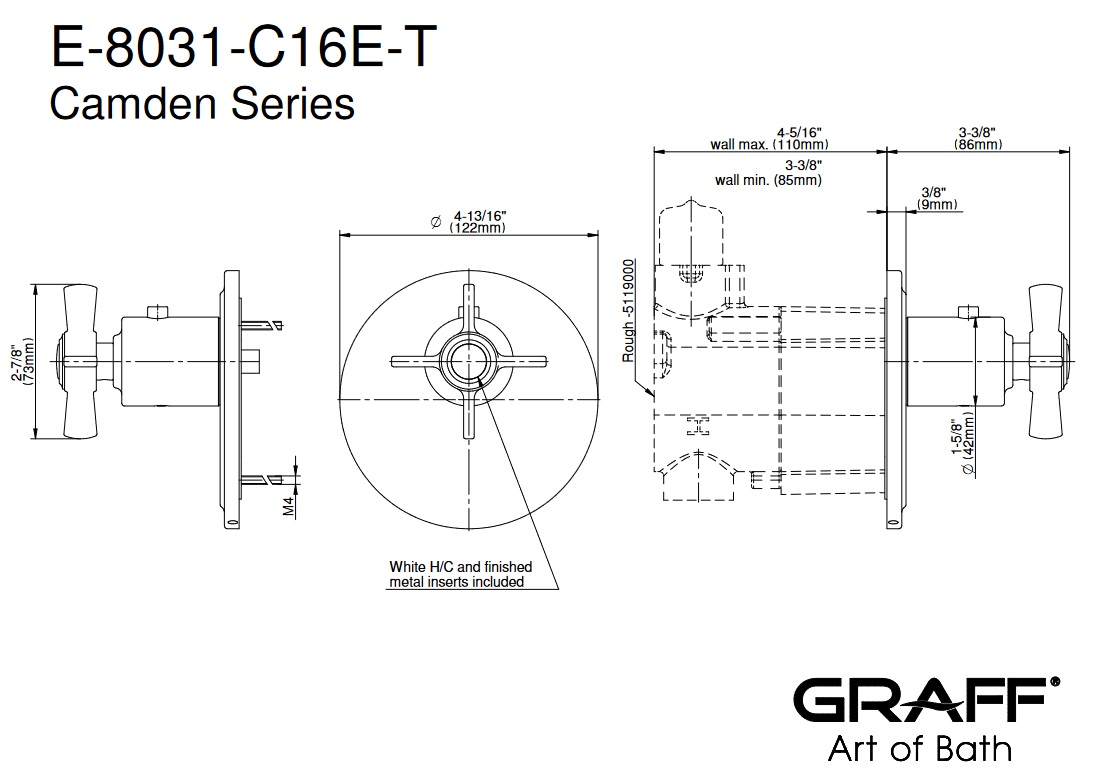 Graff Camden Bateria natryskowa termostatyczna podtynkowa - element zewnętrzny Chrom E-8031-C16E-T