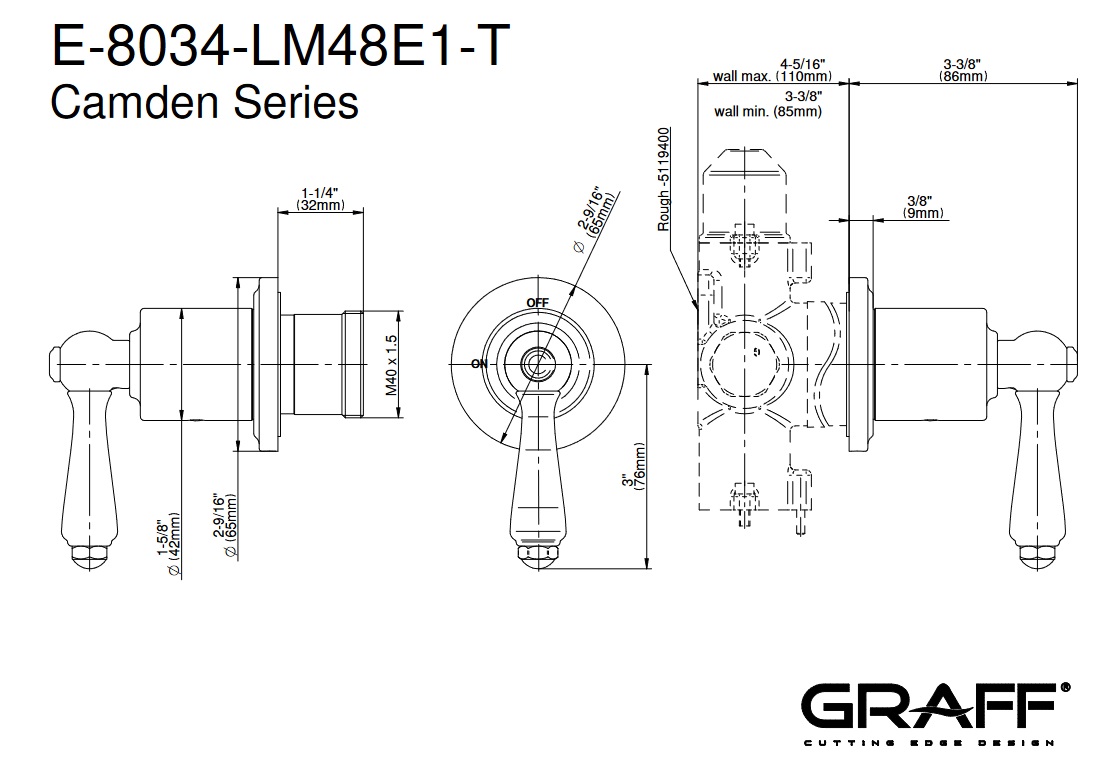 Graff Camden Zawór odcinający podtynkowy - element zewnętrzny Chrom E-8034-LM48E1-T