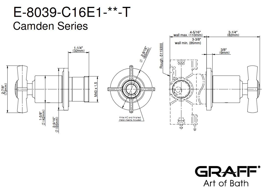 Graff Camden Rozdzielacz 3-drożny podtynkowy - element zewnętrzny Chrom E-8039-C16E1-T
