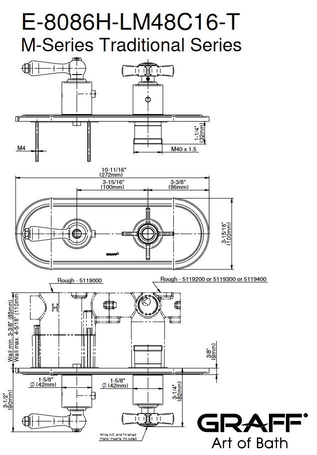 Graff Camden Bateria natryskowa termostatyczna 2-uchwytowa podtynkowa - element zewnętrzny Chrom E-8086H-LM48C16-T