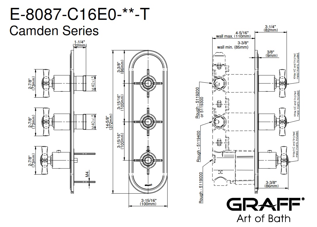 Graff Camden Bateria natryskowa termostatyczna 3-uchwytowa podtynkowa - element zewnętrzny Chrom E-8087-C16E0-T