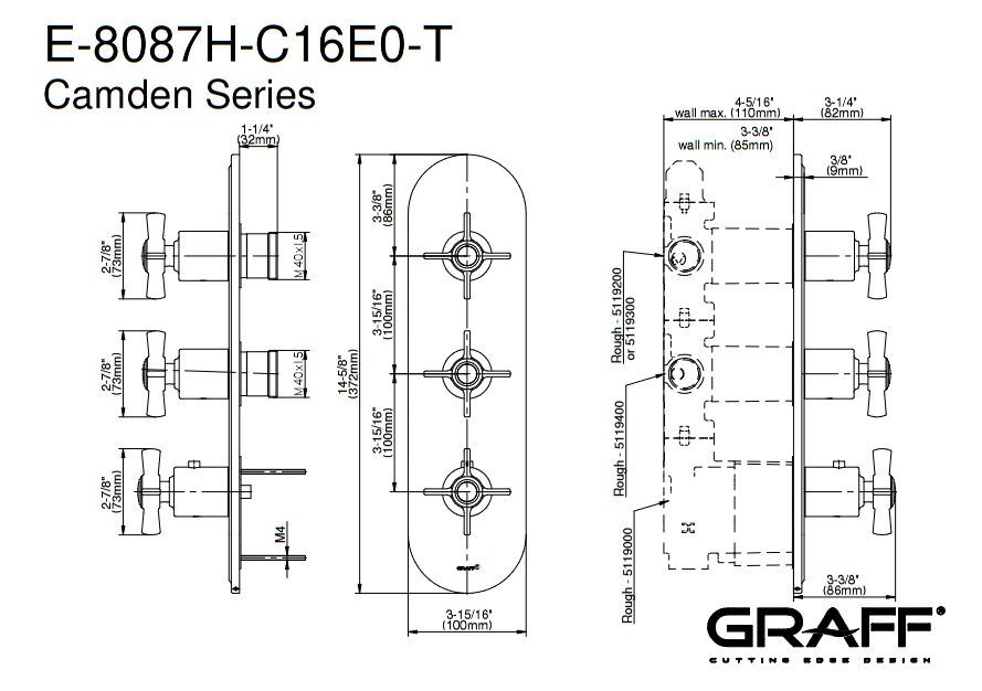 Graff Camden Bateria natryskowa termostatyczna 3-uchwytowa podtynkowa - element zewnętrzny Chrom E-8087H-C16E0-T