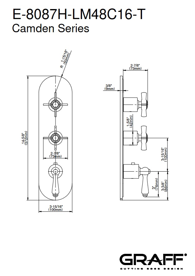 Graff Camden Bateria natryskowa termostatyczna 3-uchwytowa podtynkowa - element zewnętrzny Chrom E-8087H-LM48C16-T