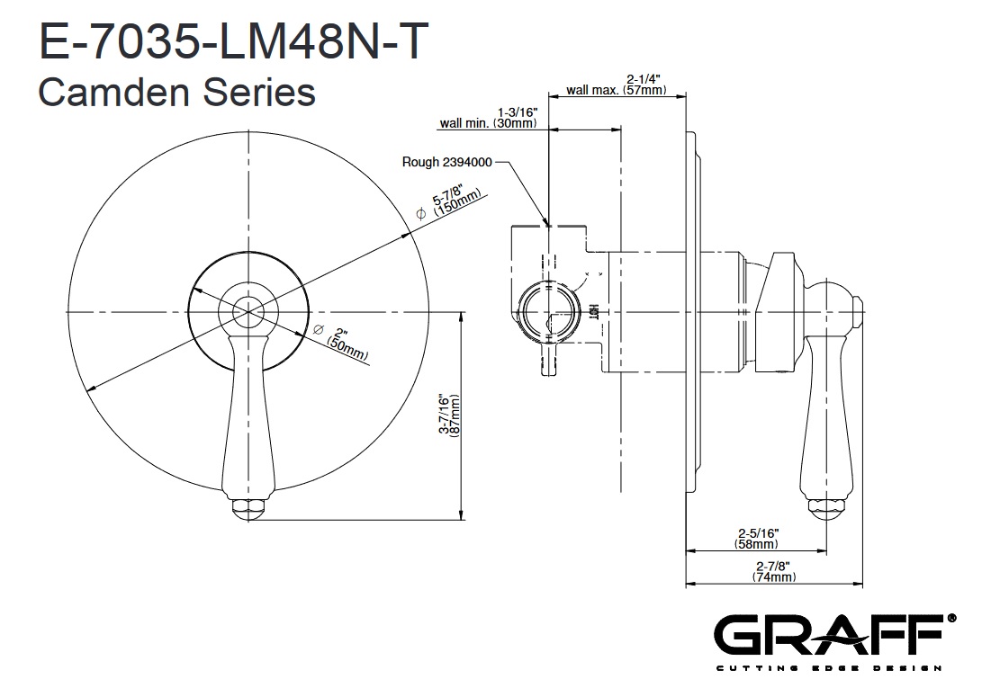 Graff Camden Bateria natryskowa podtynkowa - element zewnętrzny Chrom E-7035-LM48N-T