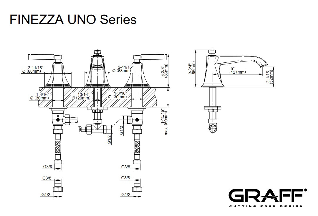 Graff Finezza Uno Bateria umywalkowa 3-otworowa Chrom E-6810-LM47B