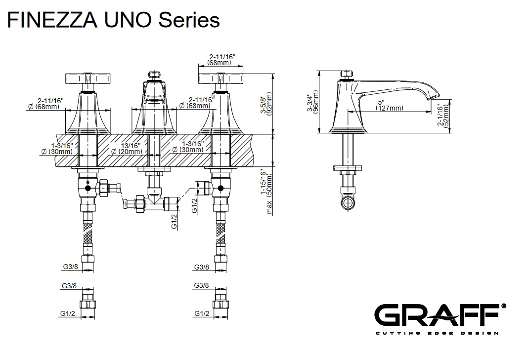 Graff Finezza Uno Bateria umywalkowa 3-otworowa Chrom E-6810-C15B