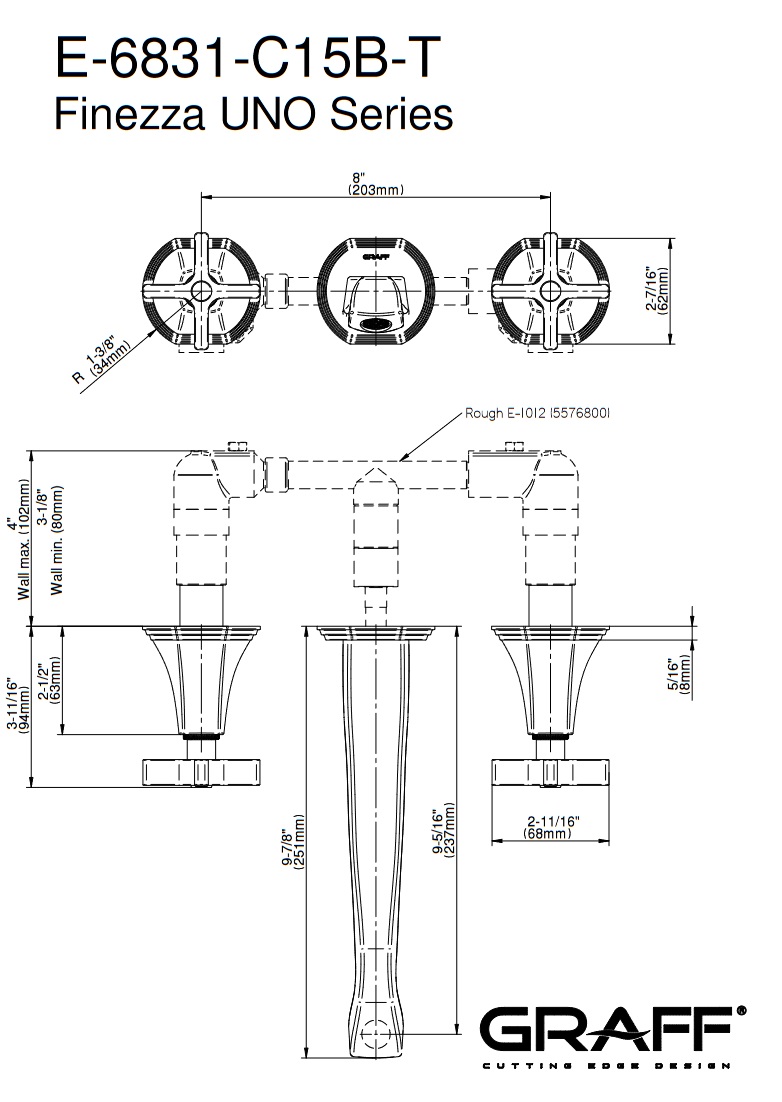 Graff Finezza Uno Bateria umywalkowa 3-otworowa podtynkowa 238 mm - element zewnętrzny Chrom E-6831-C15B-T