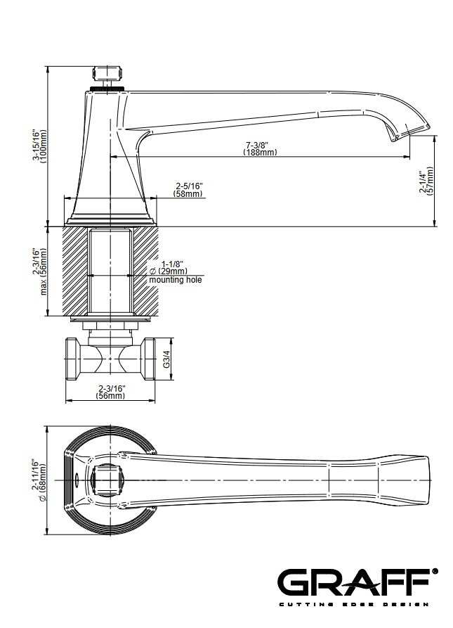 Graff Finezza Uno Wylewka wannowa nablatowa Chrom E-6859-T
