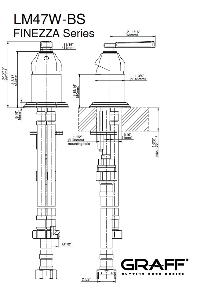 Graff Finezza Uno Bateria wannowa nablatowa Chrom LM47W-BS