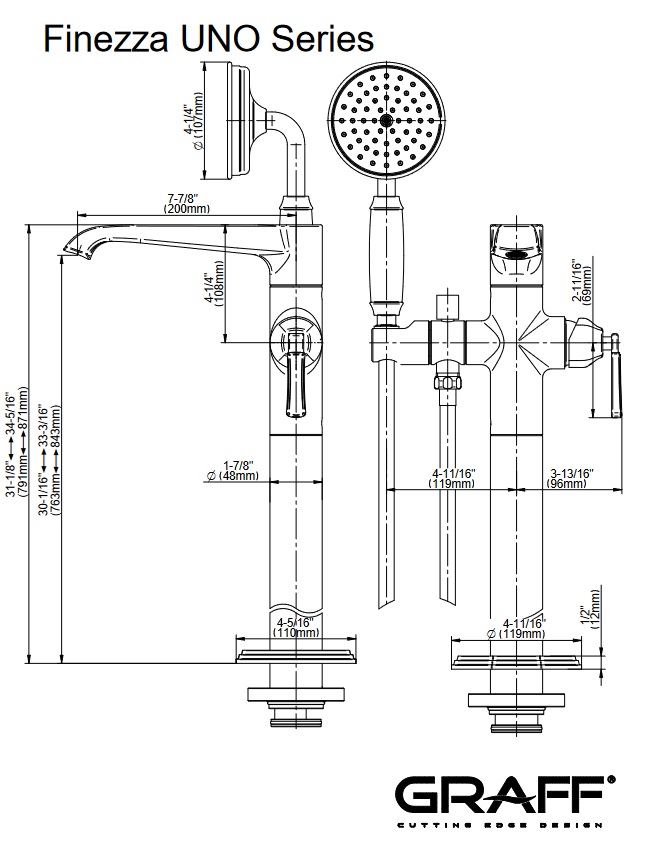 Graff Finezza Uno Bateria wannowa wolnostojąca z zestawem prysznicowym Chrom E-6854-LM47N-T