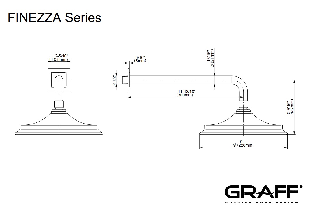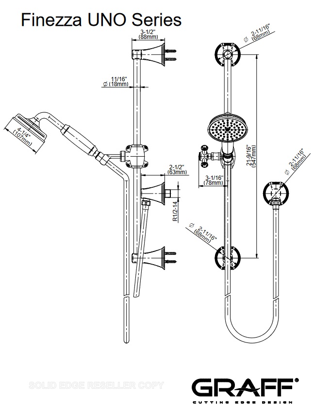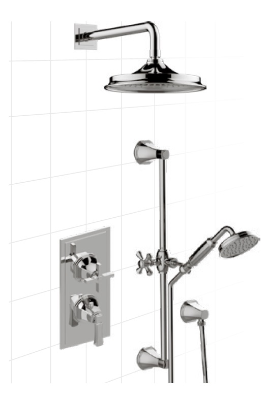 Graff Finezza Uno Zestaw natryskowy termostatyczny podtynkowy z deszczownicą Ø228 mm z zestawem prysznicowym na drążku kompletny Chrom UNO03