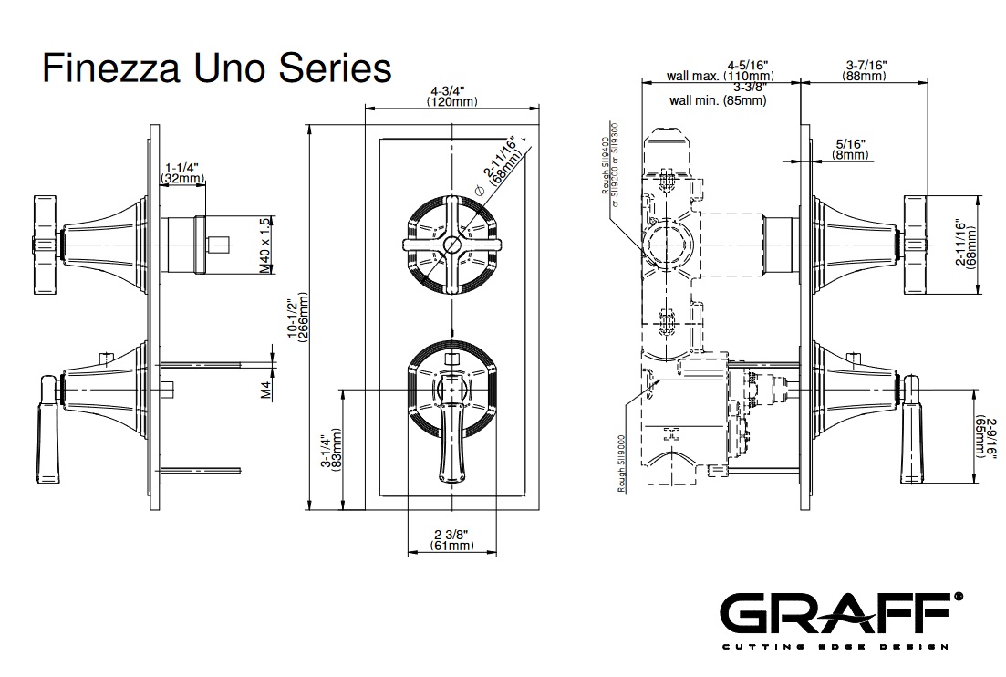 Graff Finezza Uno Bateria prysznicowa termostatyczna 2-uchwytowa podtynkowa - element zewnętrzny Chrom E-8049-1L1C-T
