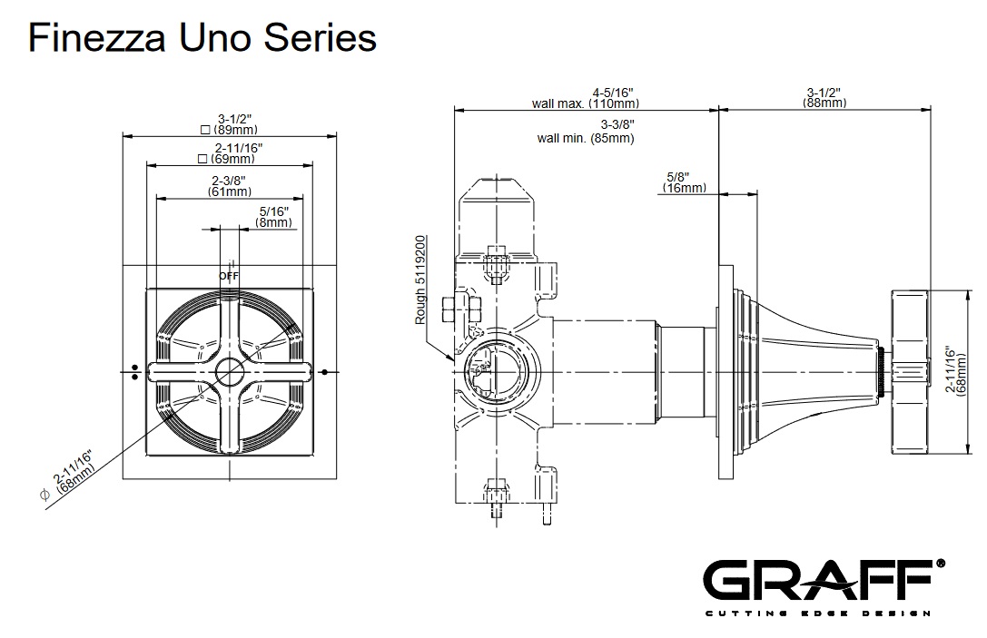 Graff Finezza Uno Rozdzielacz 2-drożny podtynkowy - element zewnętrzny Chrom E-8073-C15E1-T