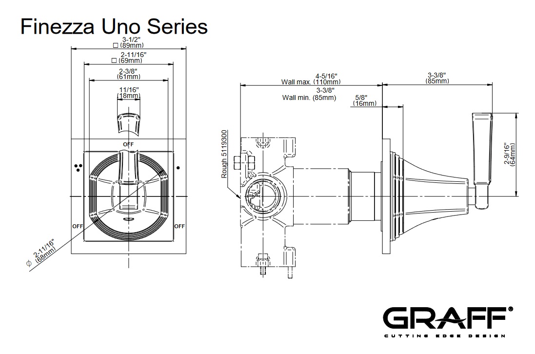 Graff Finezza Uno Rozdzielacz 3-drożny podtynkowy - element zewnętrzny Chrom E-8074-LM47E1-T