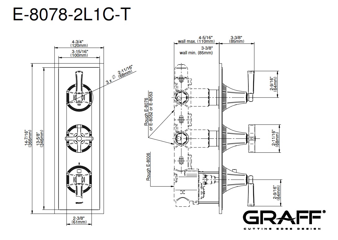 Graff Finezza Uno Bateria prysznicowa termostatyczna 3-uchwytowa podtynkowa - element zewnętrzny Chrom E-8078-2L1C-T