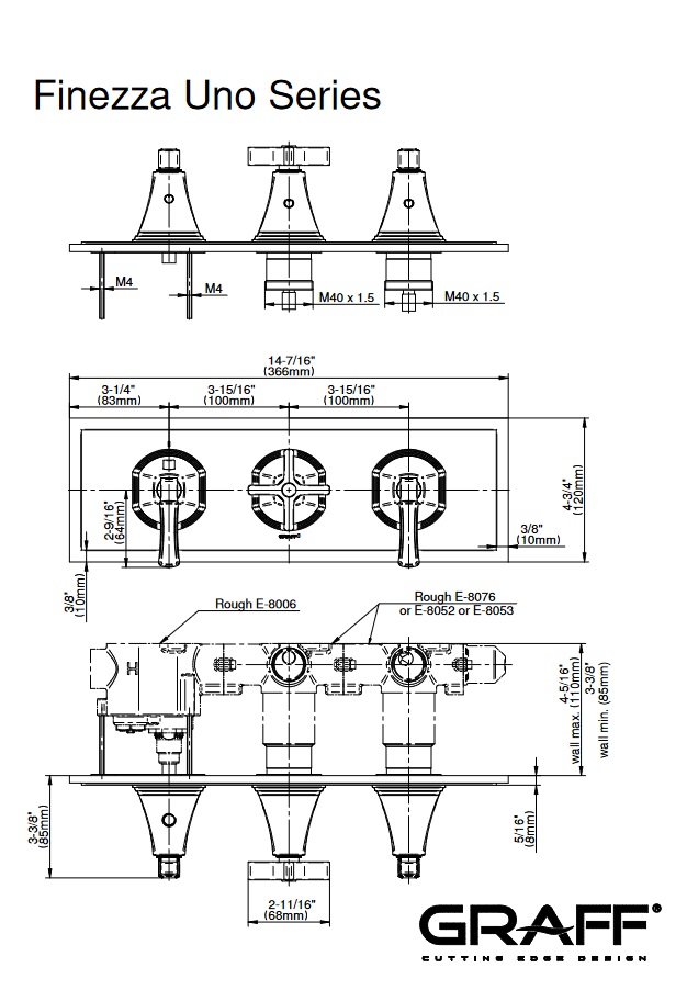 Graff Finezza Uno Bateria prysznicowa termostatyczna 3-uchwytowa podtynkowa - element zewnętrzny Chrom E-8078H-1L2C-T