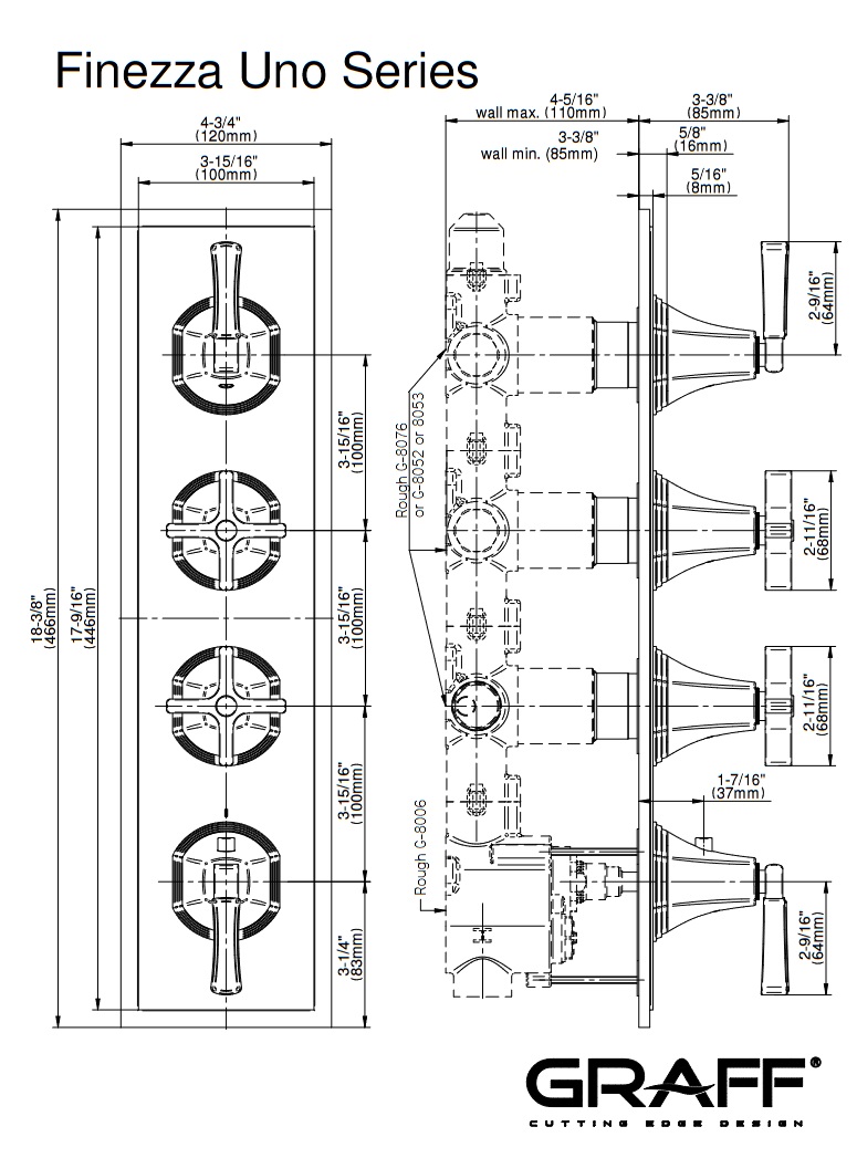 Graff Finezza Uno Bateria prysznicowa termostatyczna 4-uchwytowa podtynkowa - element zewnętrzny Chrom E-8079-C15E0-T