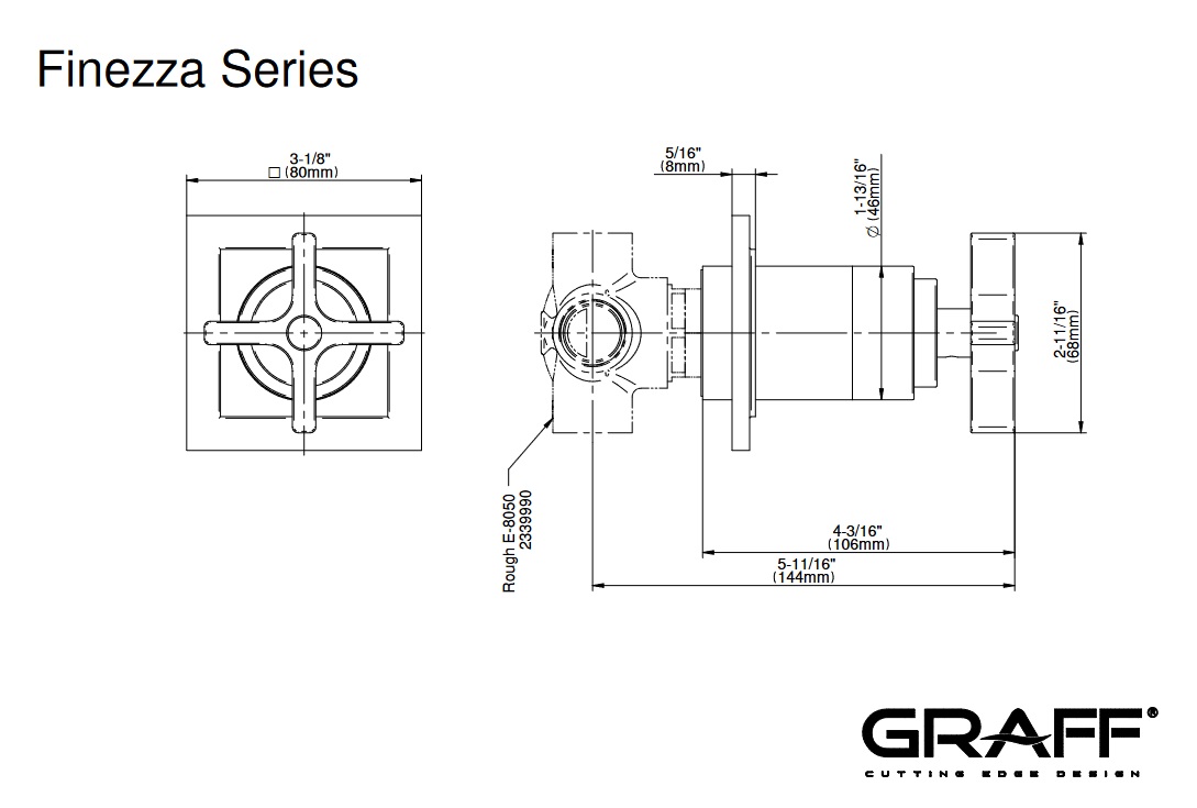 Graff Finezza Uno Przełącznik 3-drożny z funkcją odcinającą podtynkowy - element zewnętrzny Chrom E-8065-C15S-T
