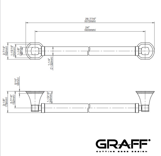 Graff Finezza Uno Poręcz uchwyt ścienny 603 mm Chrom E-9824