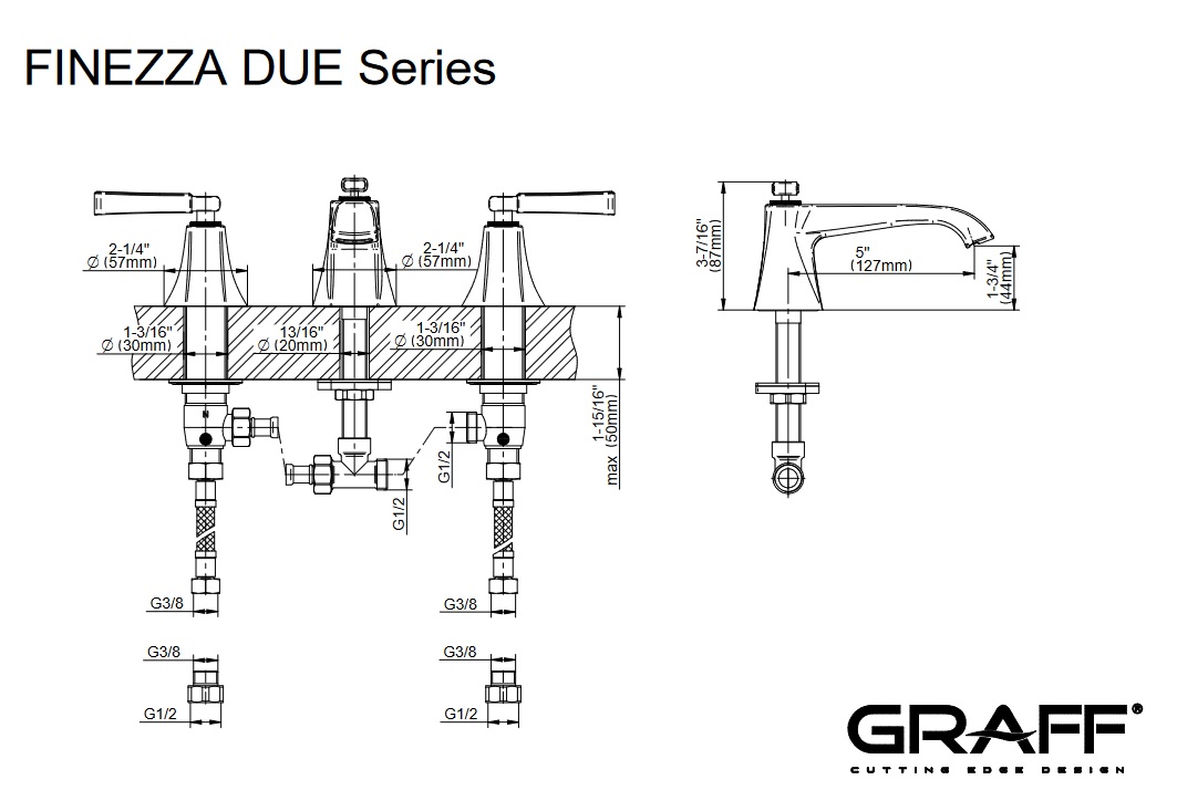 Graff Finezza Due Bateria umywalkowa 3-otworowa Chrom E-6811-LM47B