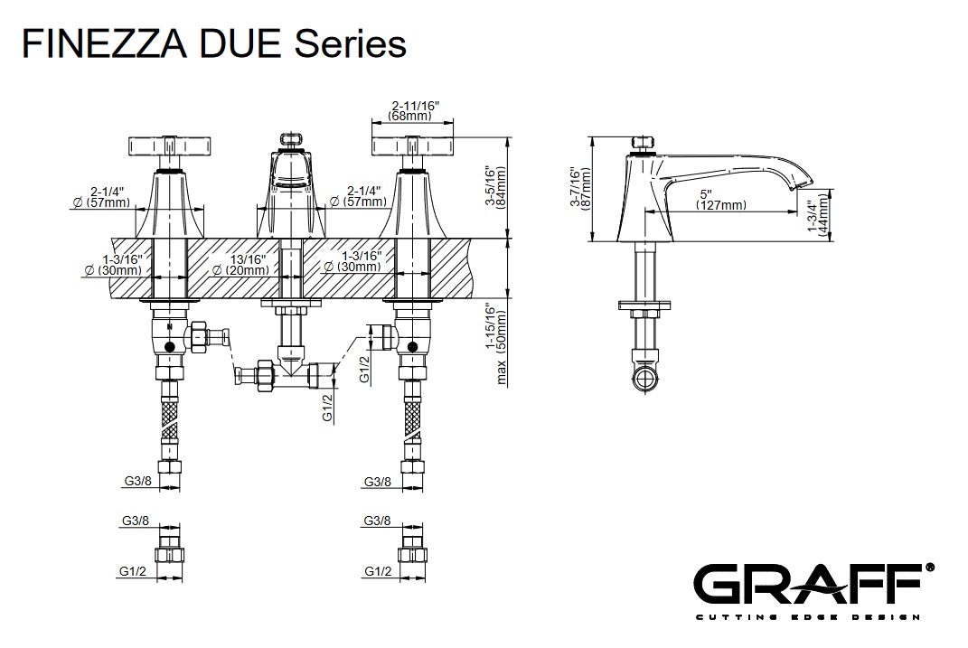 Graff Finezza Due Bateria umywalkowa 3-otworowa Chrom E-6811-C15B