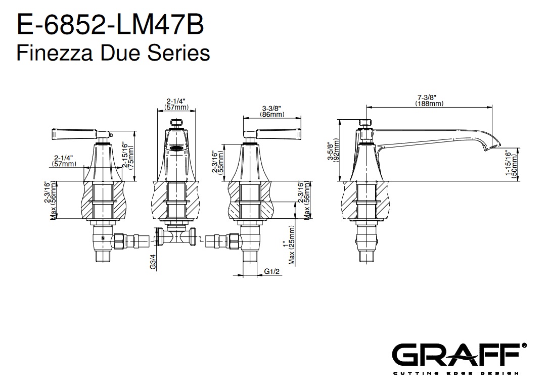Graff Finezza Due Bateria wannowa 3-otworowa Chrom E-6852-C15B