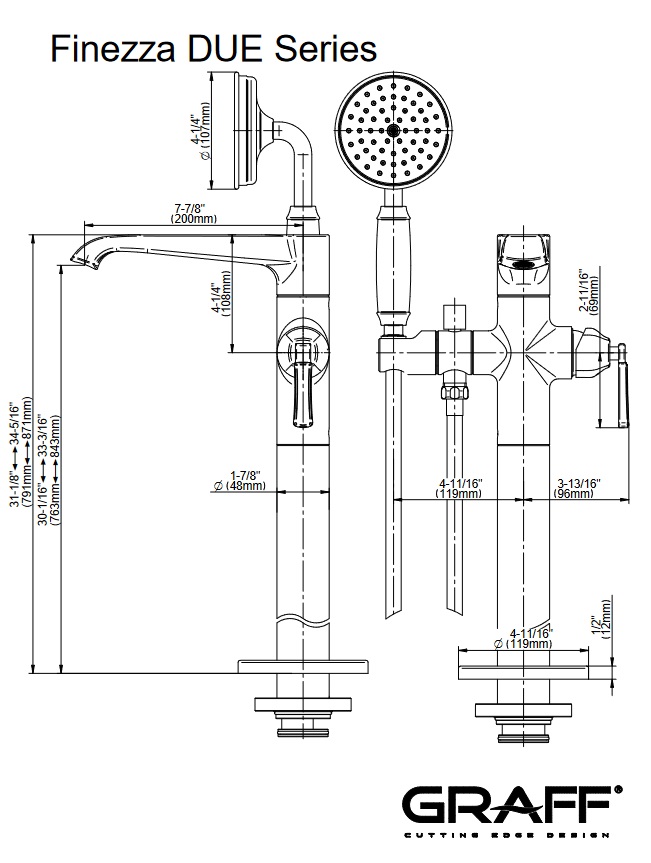 Graff Finezza Due Bateria wannowa wolnostojąca z zestawem prysznicowym Chrom E-6857-LM47N-T