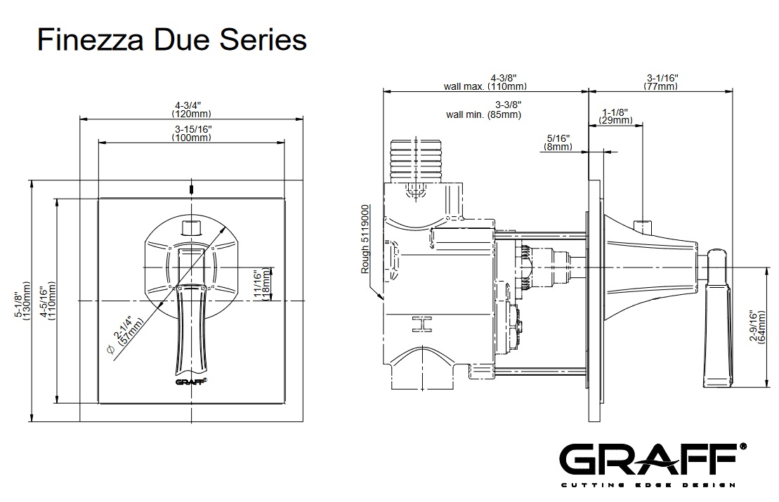 Graff Finezza Due Bateria natryskowa termostatyczna podtynkowa - element zewnętrzny Chrom E-8144-LM47E-T