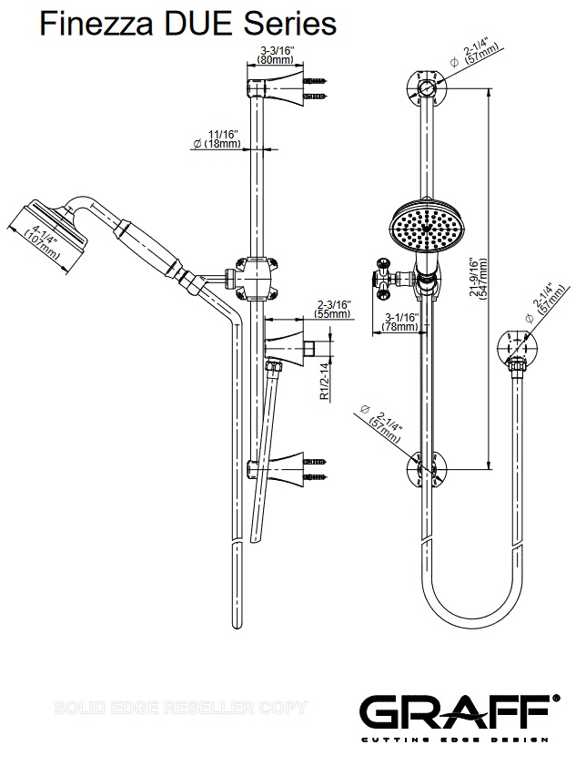 Graff Finezza Due Zestaw prysznicowy na drążka ścienny Chrom E-8656