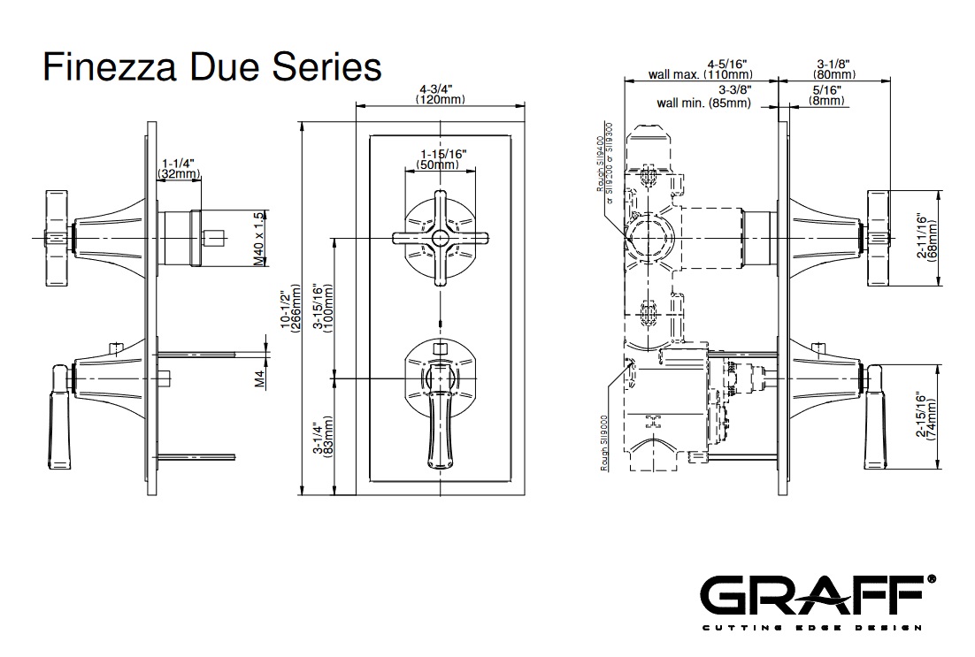 Graff Finezza Due Bateria prysznicowa termostatyczna 2-uchwytowa podtynkowa - element zewnętrzny Chrom E-8149-1L1C-T