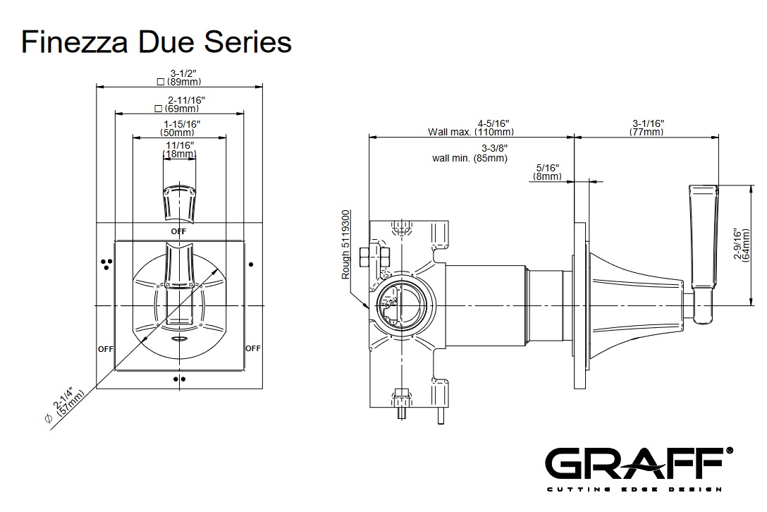 Graff Finezza Due Rozdzielacz 3-drożny podtynkowy - element zewnętrzny Chrom E-8174-LM47E1-T