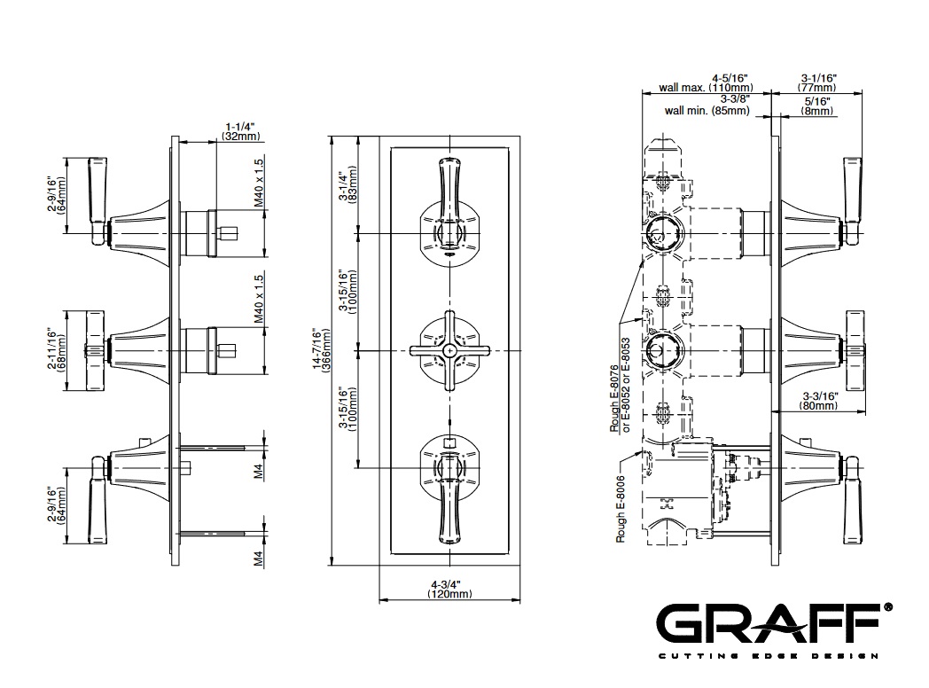 Graff Finezza Due Bateria prysznicowa termostatyczna 3-uchwytowa podtynkowa - element zewnętrzny Chrom E-8178-C15E0-T
