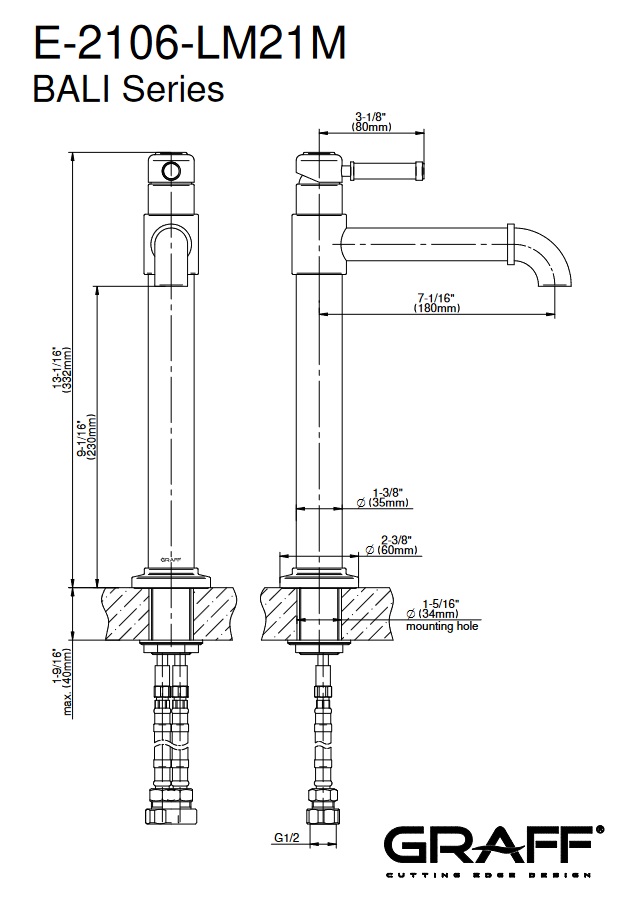 Graff Bali Bateria umywalkowa jednouchwytowa wysoka Chrom E-2106-LM21M