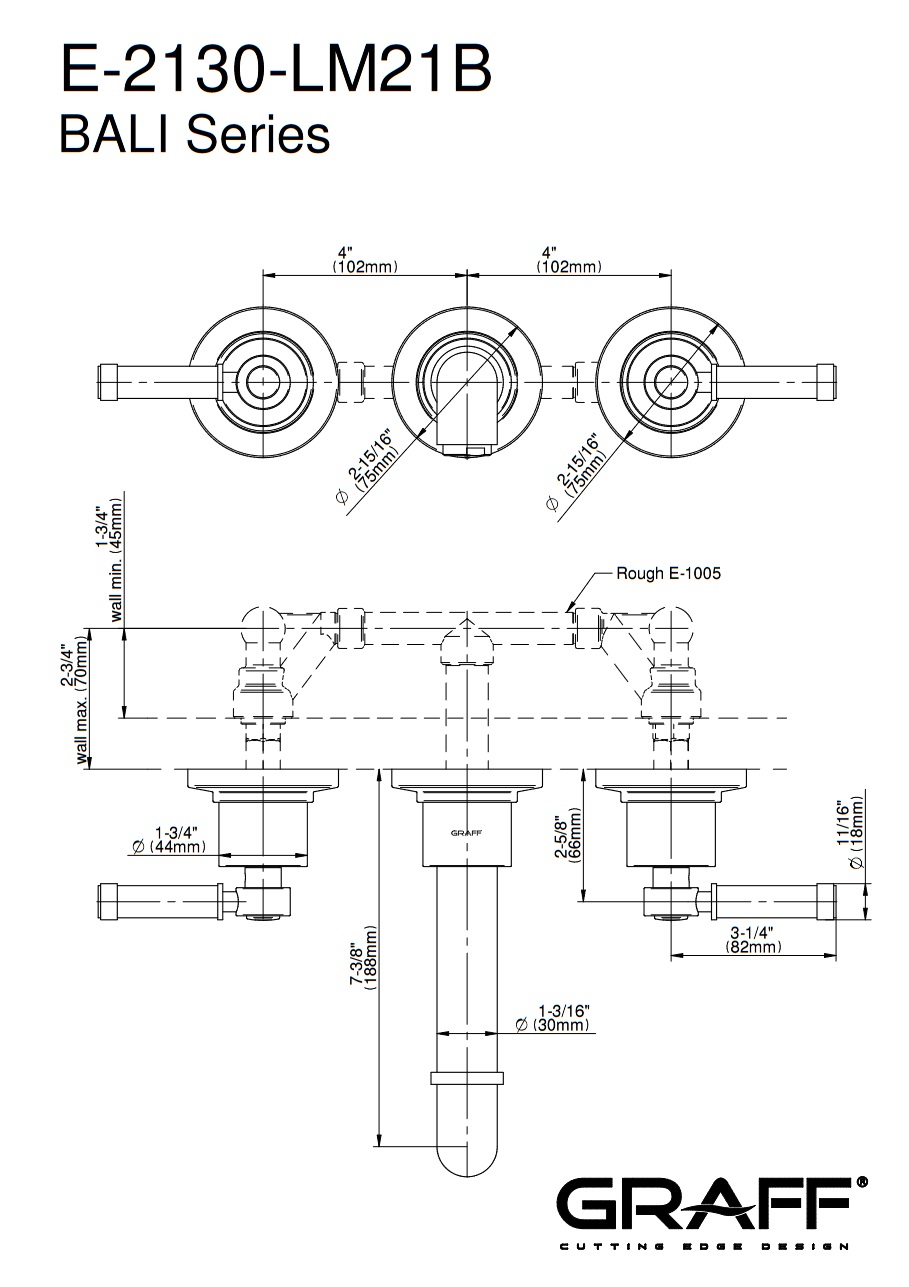 Graff Bali Bateria umywalkowa 3-otworowa podtynkowa 188 mm - element zewnętrzny Chrom E-2130-LM21B-T