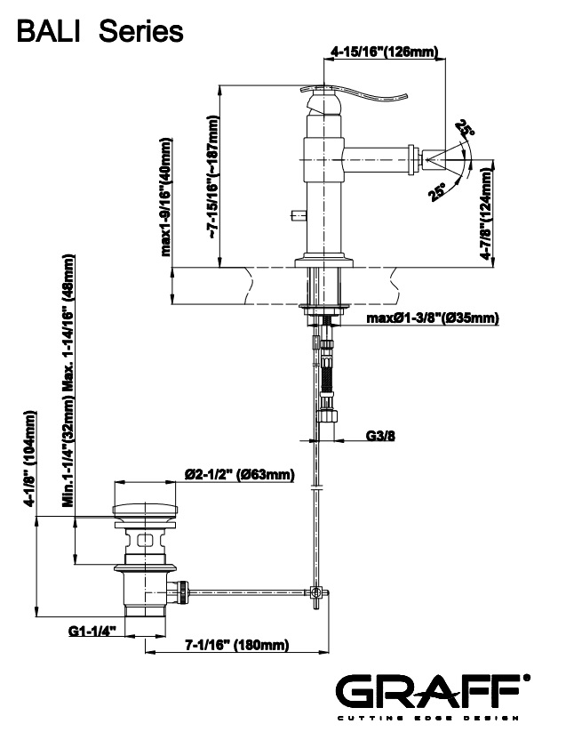 Graff Bali Bateria bidetowa jednouchwytowa z korkiem Chrom E-2162-LM20M