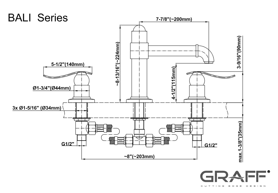 Graff Bali Bateria wannowa 3-otworowa Chrom E-2150-LM20B