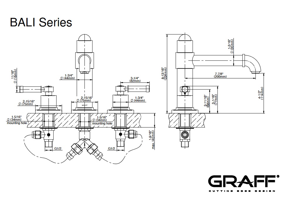 Graff Bali Bateria wannowa 3-otworowa Chrom E-2150-LM21B